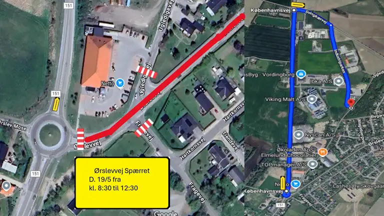 - Mandag d. 19. maj kl. 06:00 til 18:00 vil Ørslevvej være spærret mellem Ugledigevej & Rørkærvej.