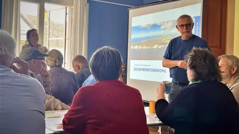 Engagementet var stort, da 29 deltagere – sammen med Sporløs Færd og biosfæresekretariatet – mødtes for at drøfte idéen om en lokal biosfæreforening. Nu tages næste skridt: en stiftende generalforsamling den 25. juni på Stege Gamle Rådhus.